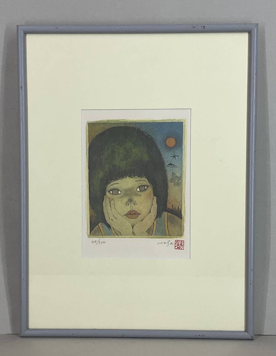 - 《真作》 ◇ 米倉斉加年 「椰子の実」 版画 額装 ◇ 画家 絵師 俳優 演出家 福岡