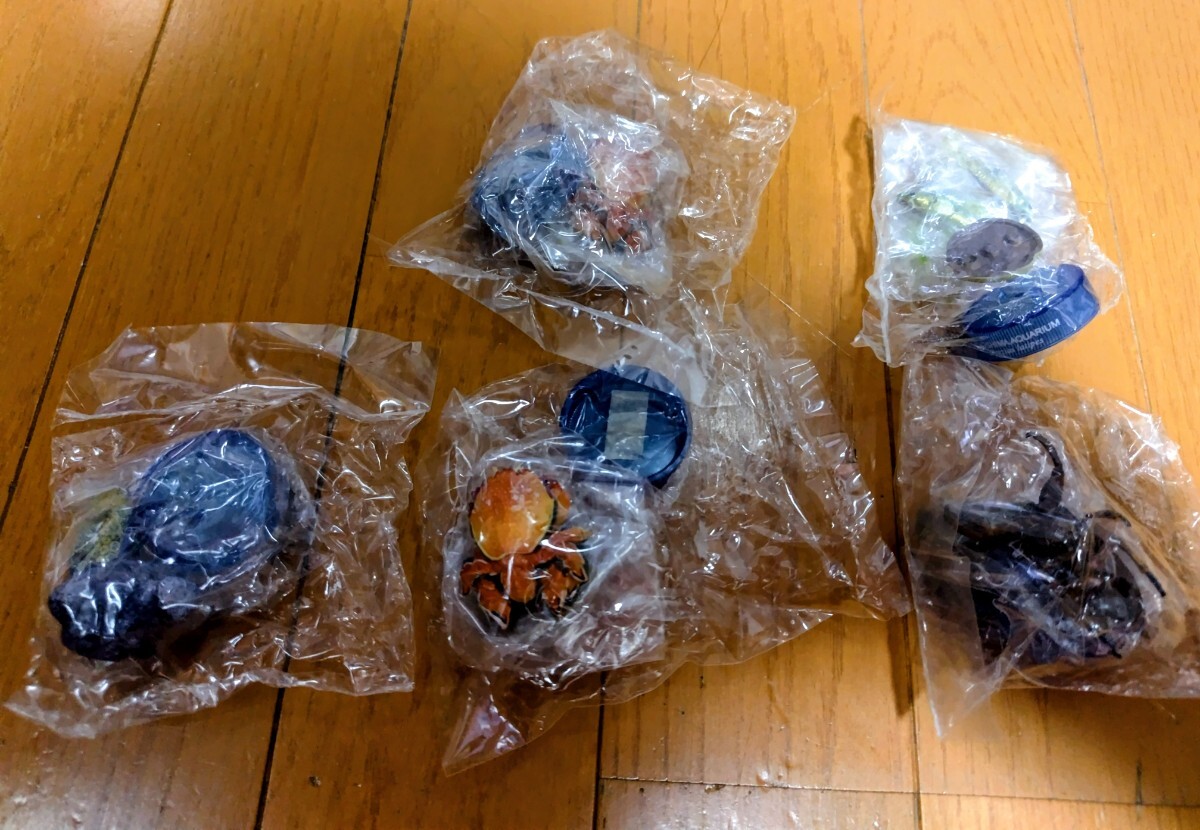 - ★新江ノ島水族館!ガチャボトルキャップ海洋堂ハコフグアサヒガニタガメメダカ5個セット
