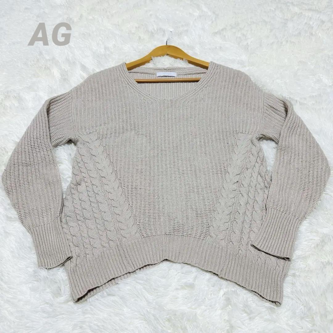 - 【アクアガール】/Vネックケーブル編みニット/ベージュ/ワールド/トップス