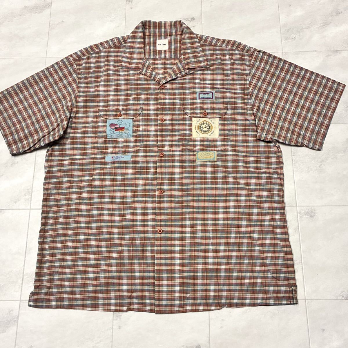 - Karl Helmut カールヘルム 開襟 オープンカラー チェック タグ 半袖シャツ PINK HOUSE