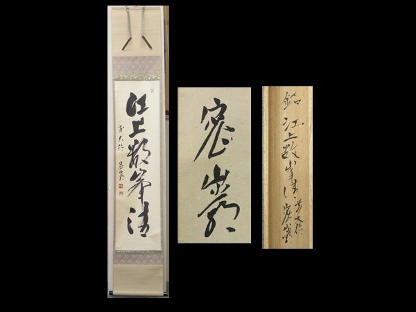 - 【心庵】掛軸 臨済宗 前大徳 円通寺 栗原密厳 紙本 一行書「江上数峯青」/肉筆 共箱 花押 真作 A650