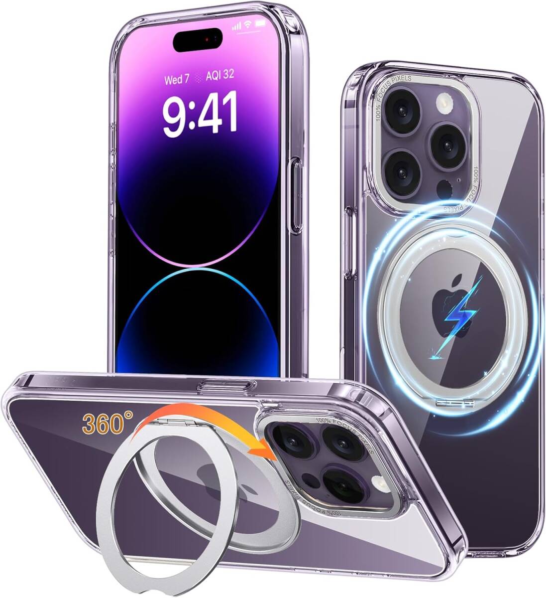 > iPhone 14 Pro 用 ケース Magsafe対応 ワイヤレス充電 360°回転スタンド 縦横両対応