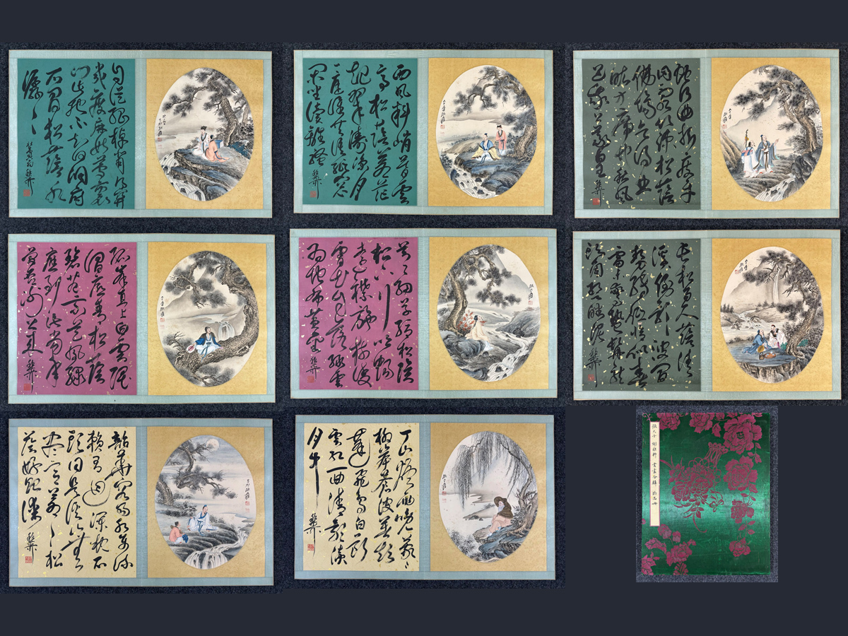 - ▽鴻▽古書道【近時代画家「張大千書」紙本「人物図冊頁 8開」短冊 】 真筆肉筆 骨董書画 掛け軸 時代物 中国古美術 骨董品