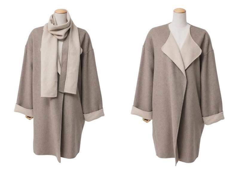 > MI1839★エムプルミエ ブラック イタリア製生地使用 Marini & Cecconi カシミヤウール ダブルフェイス マフラー付き コート ブラウン 34