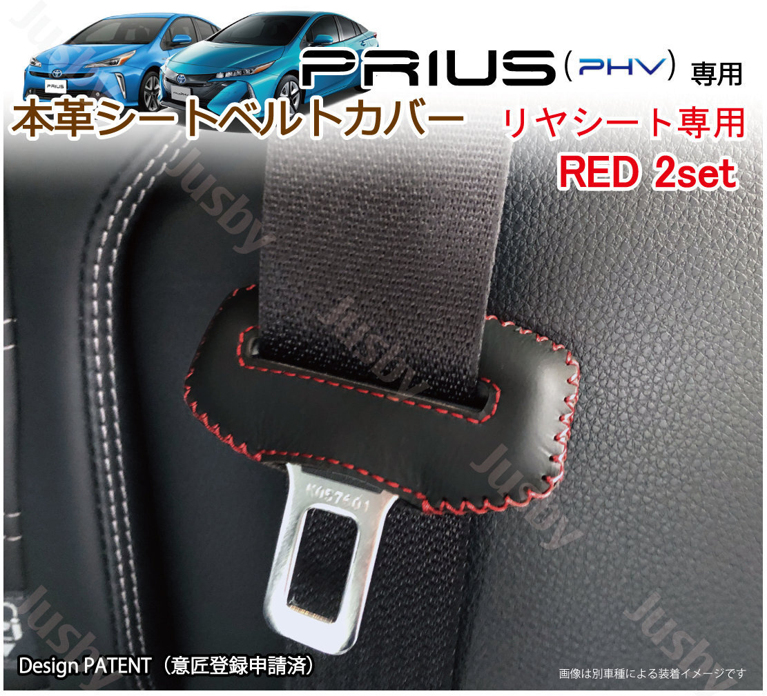 > (赤ステッチ/後部座席) 本皮トヨタ プリウス & プリウスPHV (50系)専用 シートベルトカバー レザーカバー ドレスアップ 傷防止 パーツ