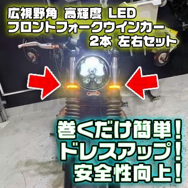 - 巻くだけ 広視野角 高輝度 LED フロントフォーク ウィンカー 2本 バイク