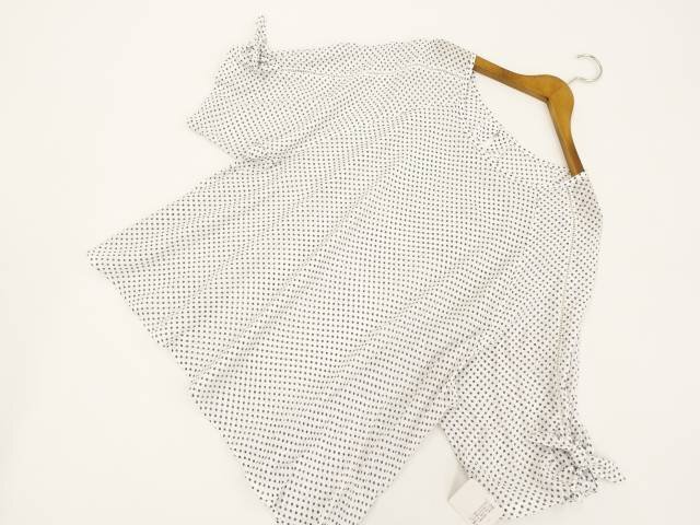 > 大きいサイズ 新品タグ付 ラグランスリーブ 五分袖 ラウンドネック プルオーバーブラウス 4L ホワイト地 ブラック ドット柄 【メール便可】
