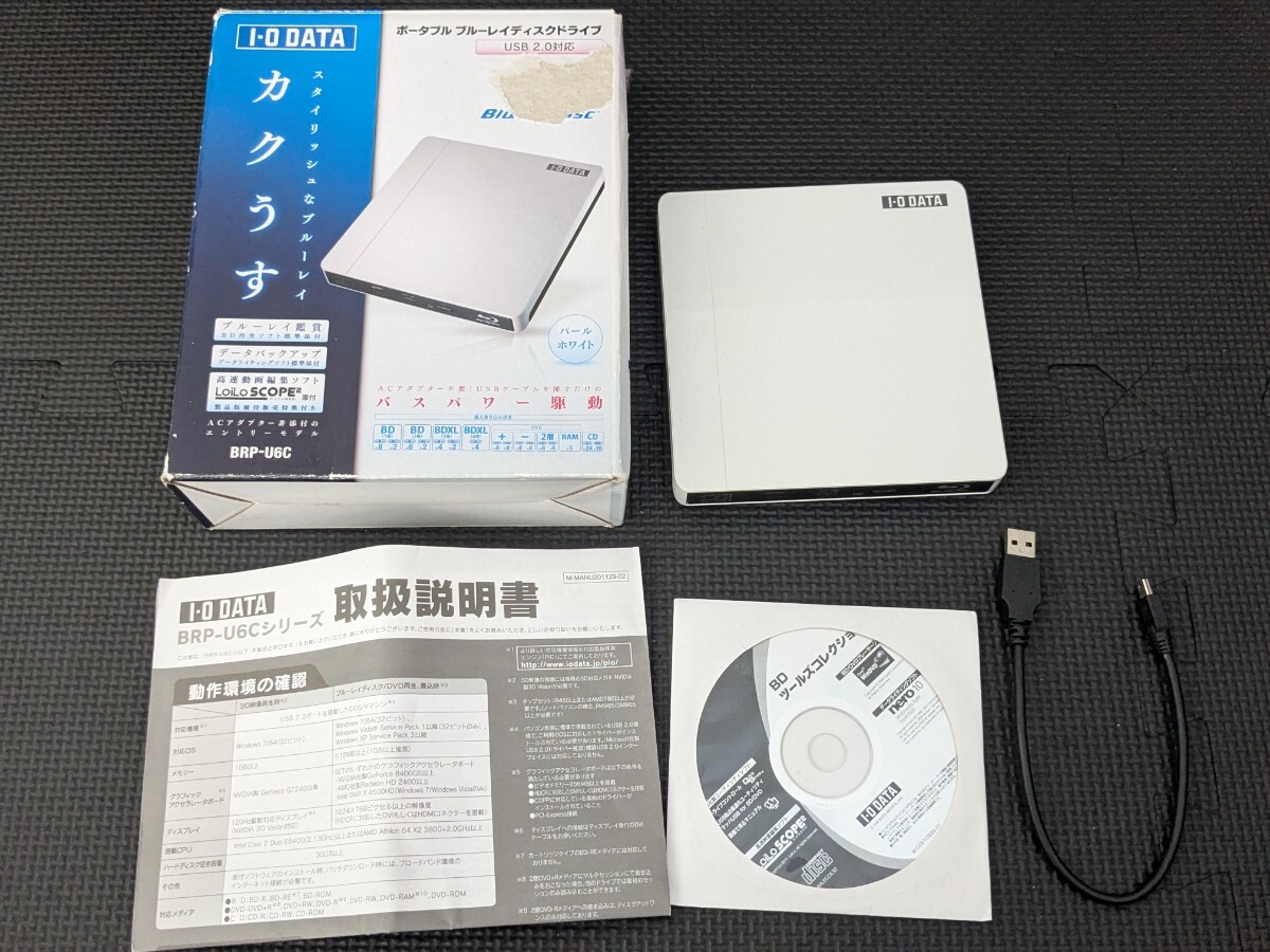 - 0710u1716 I-O DATA BDXL・3D再生対応 ポータブルブルーレイドライブ パールホワイト BRP-U6C