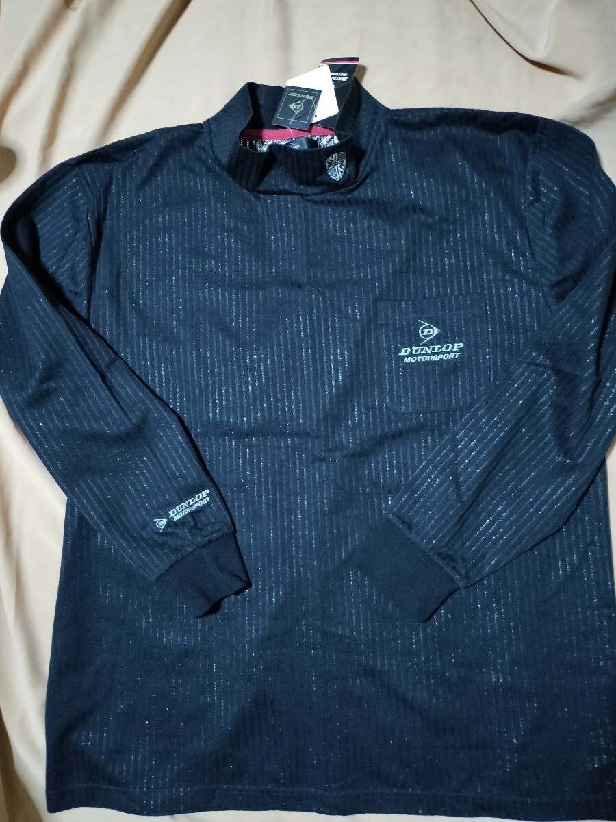 > ダンロップ ゴルフウェア,トップス,カットソー,プルオーバー 黒色 裏アルミ箔で防寒,防風 大きいサイズ3L,XXL 185円送 タグ付き未使用