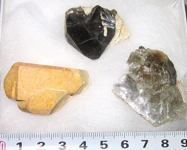 - 日本の鉱物 岐阜県蛭川村田原の鉱物3種セット/黒水晶、長石、チンワルド雲母