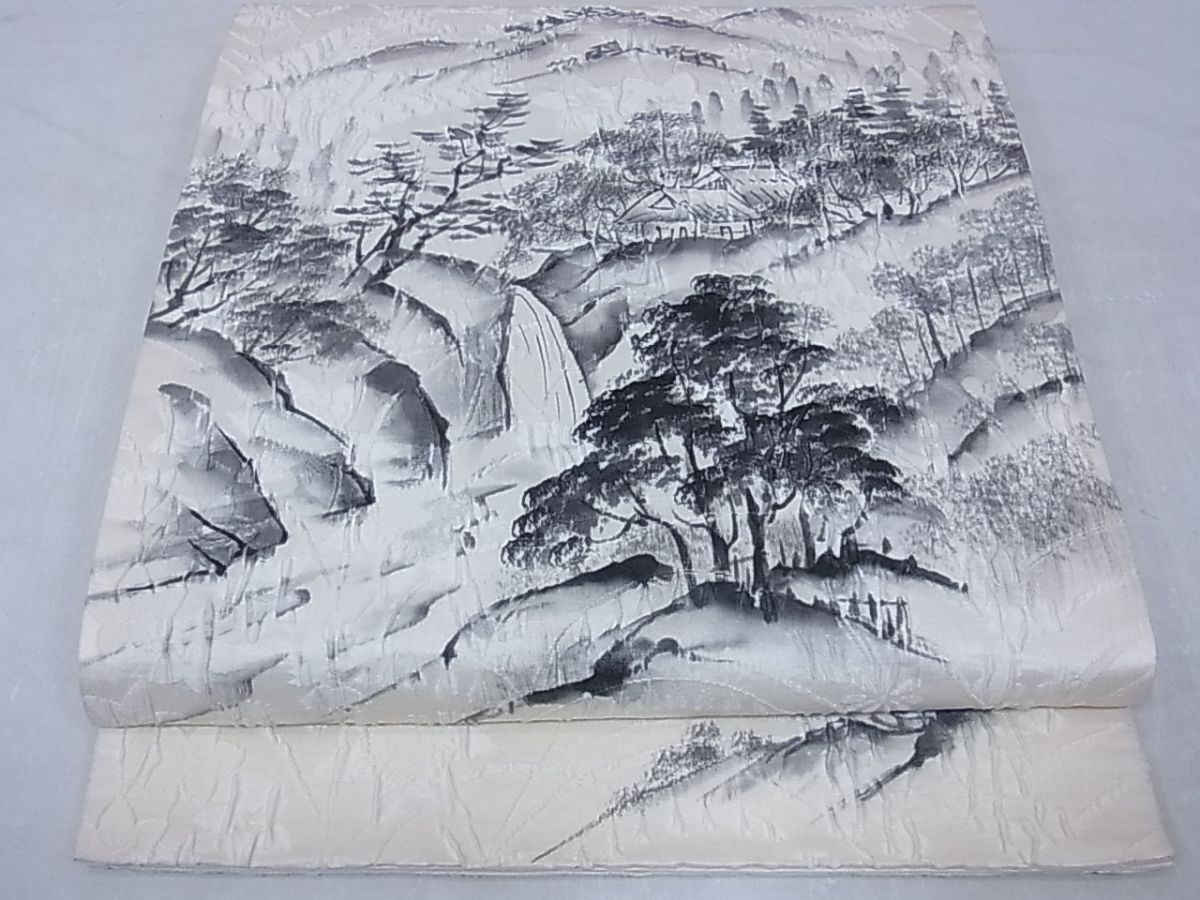 - eふれんず◆太鼓柄袋帯 ふくれ織 手描き 風景文 正絹 美品◆bm1861