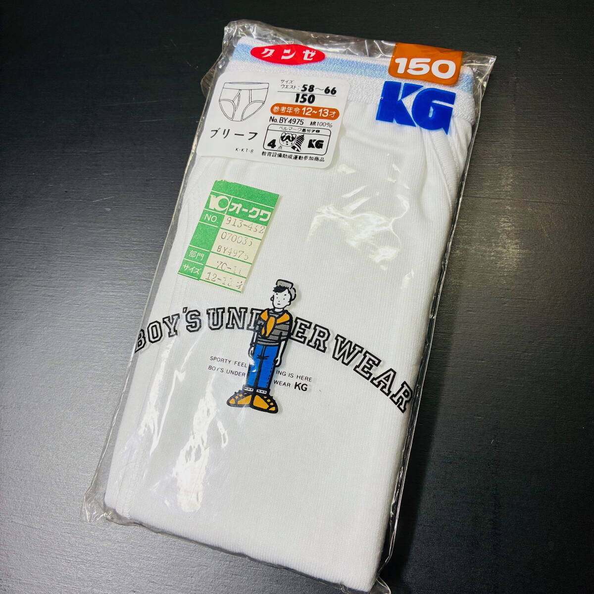 > ◆レトロ◆KG こどもグンゼ ブリーフ 白×水色ラインゴム 150cm (参考年令12~13才) 未使用・長期保管品◆
