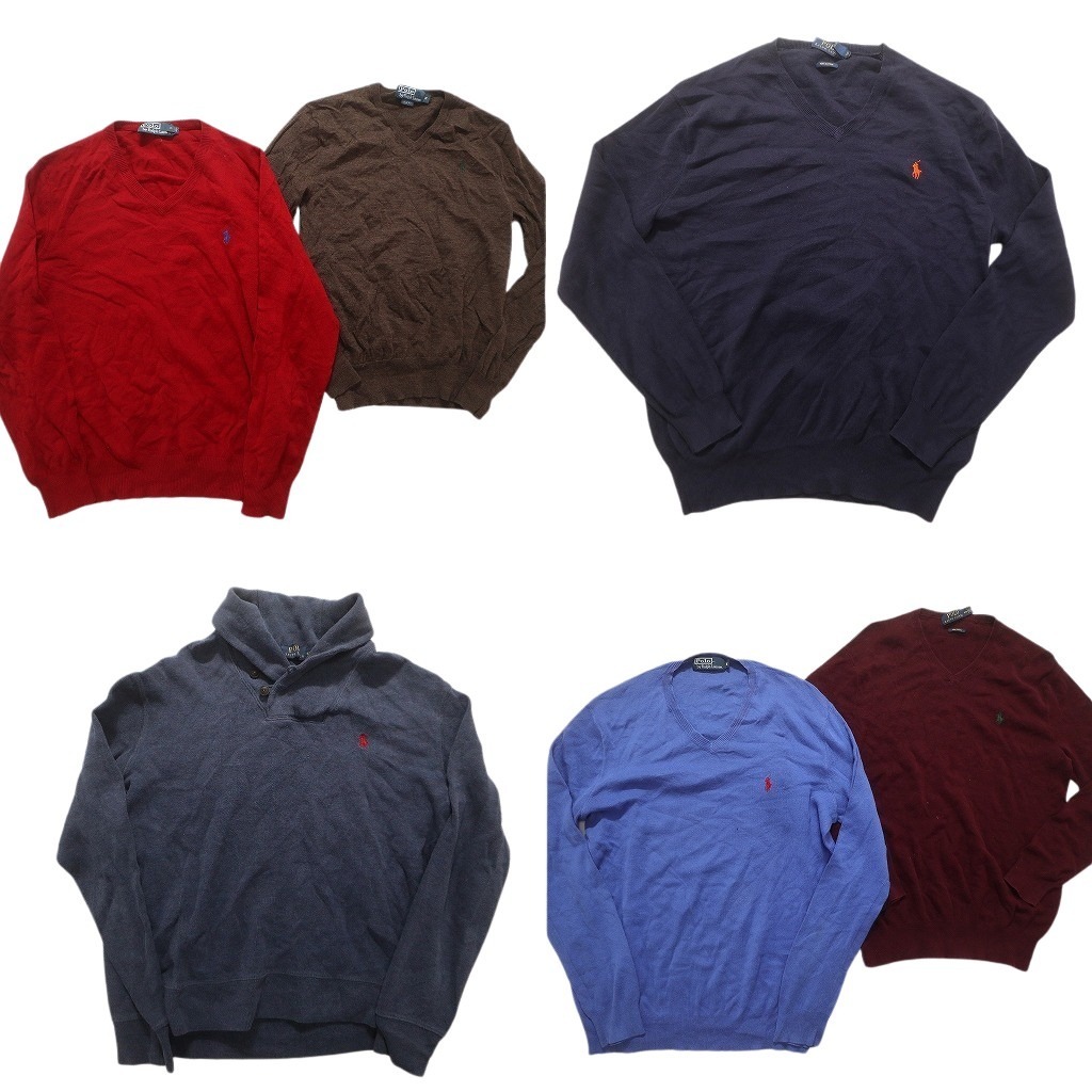 > 古着卸 まとめ売り ラルフローレン セーター 6枚セット (メンズ S /M ) ショールカラー 寒色 Vネック 中古 古着 NC3339