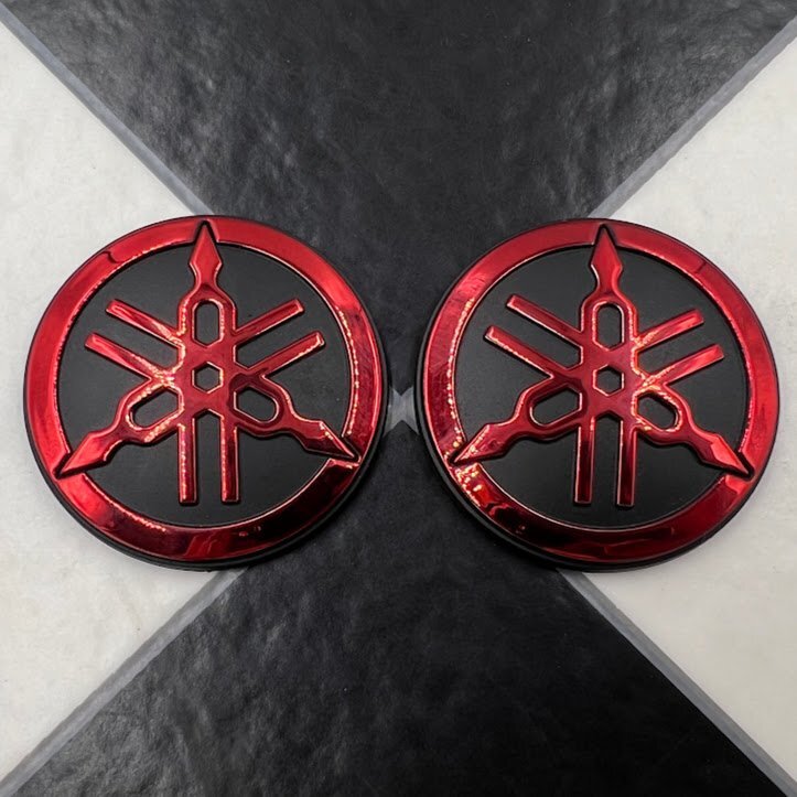 > YAMAHA赤ヤマハ音叉マークエンブレムステッカーRED2枚SET/検XJ400 XJ400D XJR400 SR500 RZ250 RZ350 SR400 旧車 レア ヨシムラ