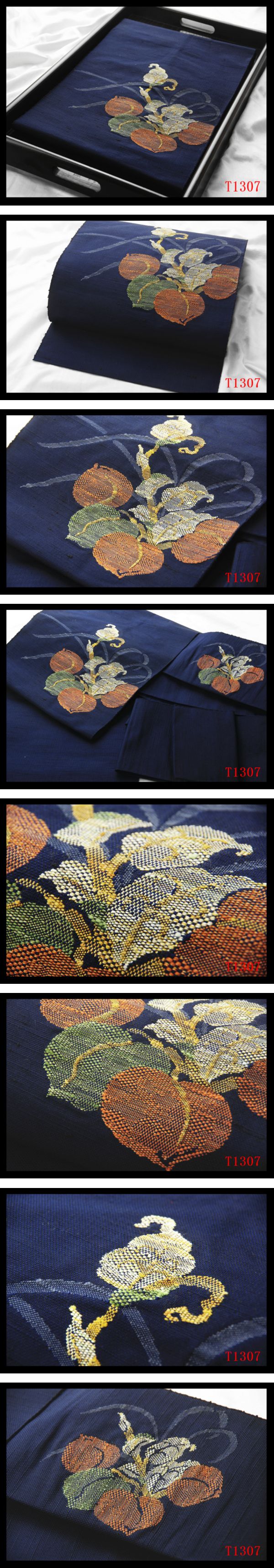 - 蔵【T1307】厳選逸品 紬 紺色地 気品豊かに 正絹高級美術名古屋帯 ◇検簪着物袋帯和装小物帯締め