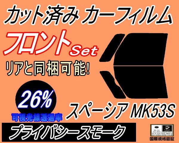 - カーフィルム プライバシースモーク カット済み フロントセット スペーシア MK53S (b) MK53 ハイブリッドも適合 スズキ ガラスフィルム