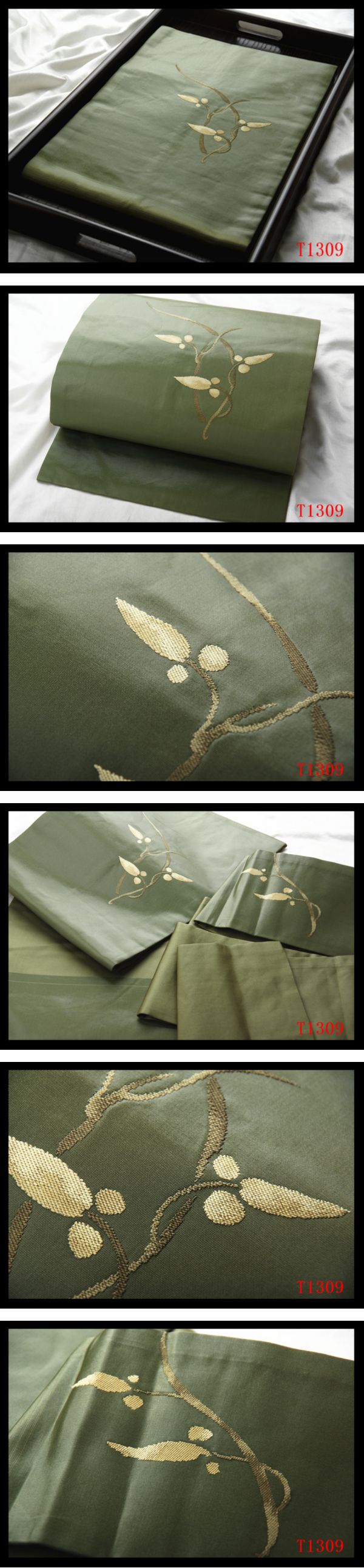 - 蔵【T1309】厳選美品 海松色地 気品豊かに 正絹高級美術名古屋帯 ◇検簪着物袋帯和装小物帯締め