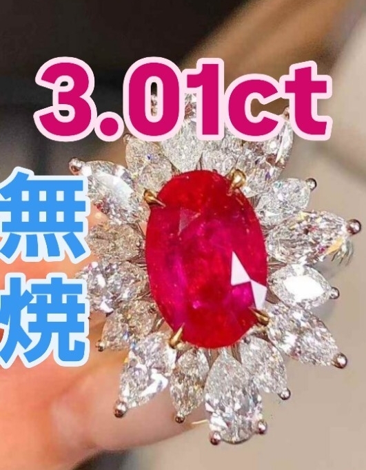 > 3.01ct無処理無焼非加熱ノーヒートピジョンブラッド2Wayリング&ペンダントGRS主証あらゆる光で咲く最上級の赤3.01ctの奇跡投資価値と美