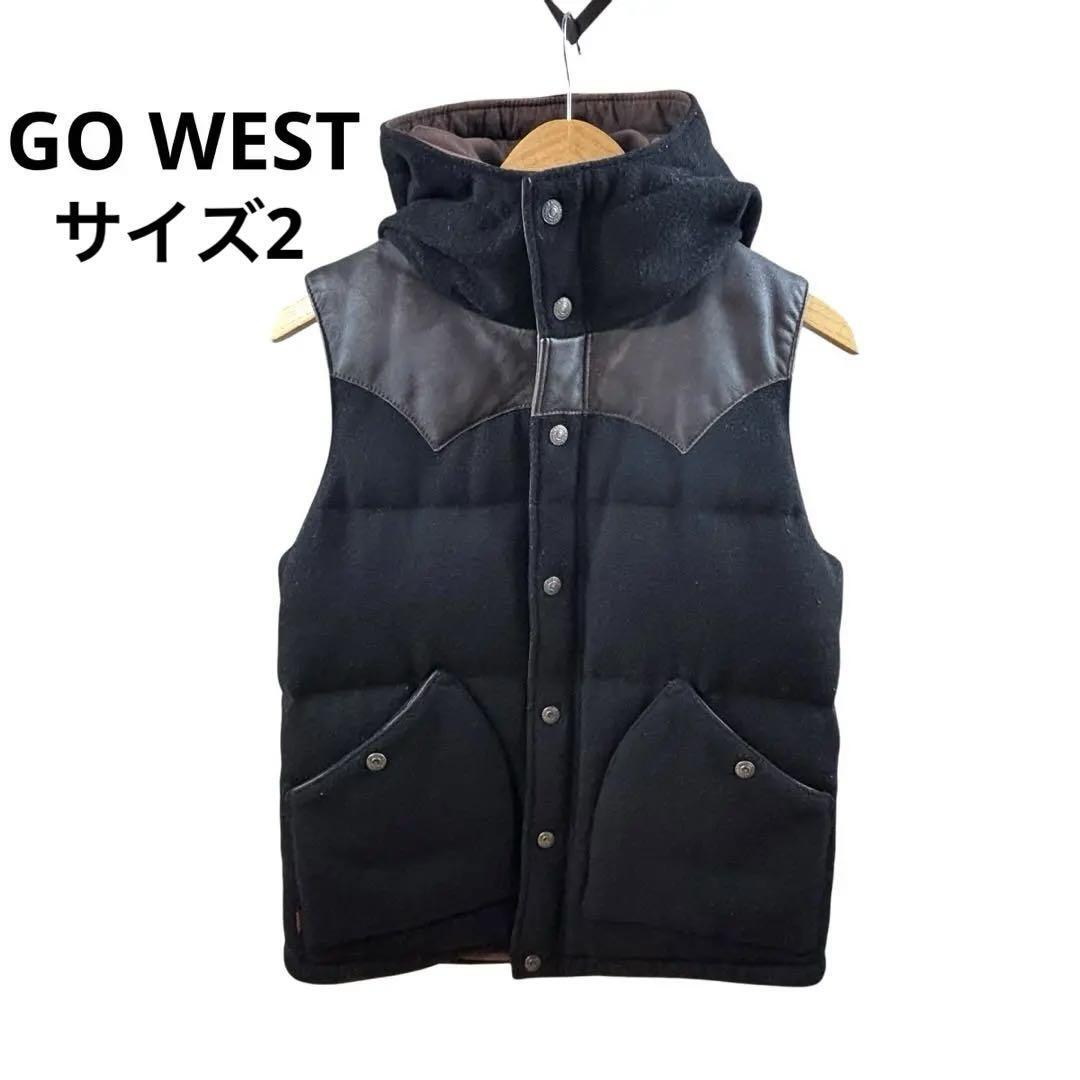 - GOWEST 本革切替 ウール混 フード付 ダウンベスト山羊黒 濃茶 サイズ2