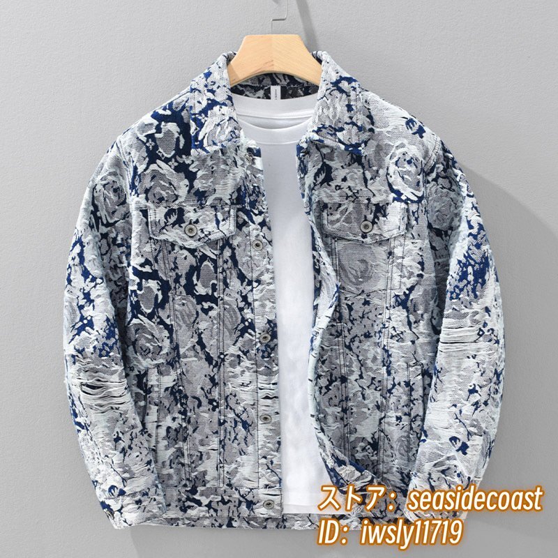 > 特売*極美品 ジャンバー メンズ ブルゾン 総柄 花柄 デニムジャケット 長袖シャツ ヴィンテージ アウター 個性 紳士服 トップス 春秋 3XL