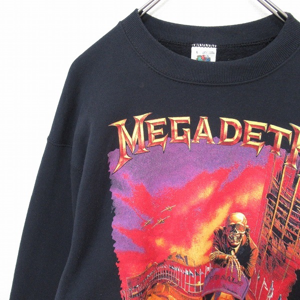 ◎商品名(タイトル):FRUIT OF THE LOOM フルーツオブザルーム×メガデス スウェット トレーナー L [a967205ss]◎ブランド名:フルーツオブザルーム×メガデス (FRUIT OF THE LOOM)◎アイテム名:スウェット トレーナー◎サイズ:L◎性別:ユニセックス◎カラー:ブラック系◎素材:画像をご参照ください◎実寸サイズ:肩幅約 54cm・袖丈約 65.5cm・着丈約 66cm・胸囲約 53cm×2◎商品コメント:★当店の商品はすべてリユースアイテムとなります。特質上、些細なダメージは記載しておりませんので着用に問題のない使用感、着古した雰囲気などはご了承くださいませ。◎コンディションレベル:目立った傷や汚れなし◎コンディション備考:古着特有の着用感はありますが全体的な状態は良好です。キーワード/アクイール/古着/used/ビンテージ/ヴィンテージ/昭和/レトロ/スエット/ロングスリーブ/プリント/バックロゴ/バンド/アルバム/アメリカ/MEGADETH/