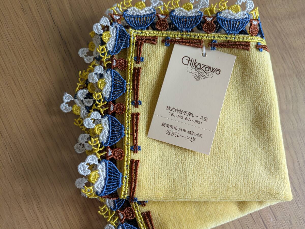 - 近沢レース タオルハンカチ 卵かけごはん イエロー