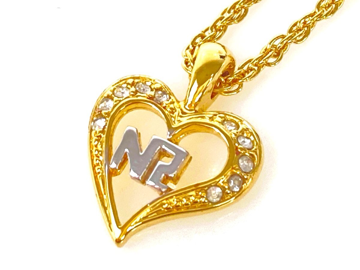 - 美品 ニナリッチ NINA RICCI NRロゴ ハート ラインストーン ネックレス ゴールドカラー×シルバーカラー YAS-10611