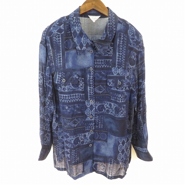 - #a レリアン Leilian シャツ ブラウス チュニック 15+ 大きいサイズ 紺系 総柄 日本製 937465 k01