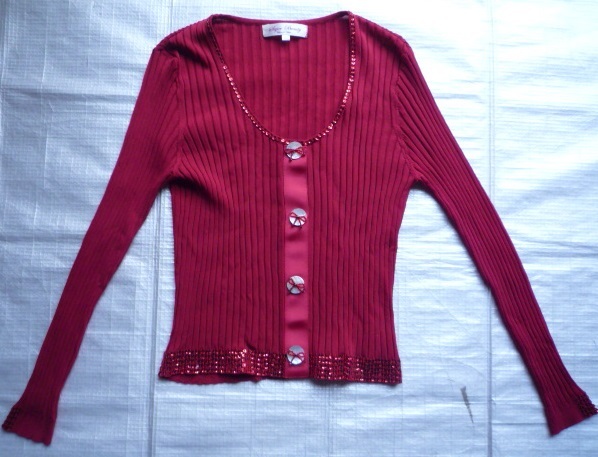 - スーパービューティ◆長袖カーディガン★40★9号★赤★Super Beauty