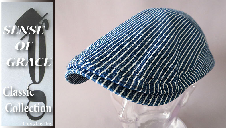 > graceグレース★ヒッコリーストライプハンチング【紺】新品 サイズ調節可能 男女兼用 洗濯機洗いOK センスオブグレース