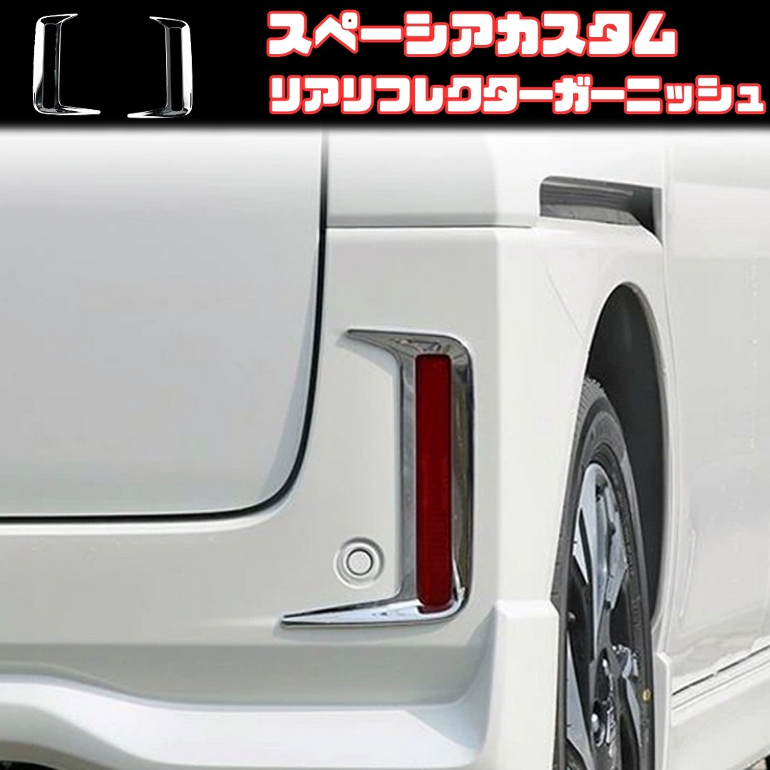 > 【スペーシアカスタム】 リア リフレクターガーニッシュ / メッキ / SUZUKI MK94S MK54S 対応 / スズキ フォグランプカバー 両面テープ取付