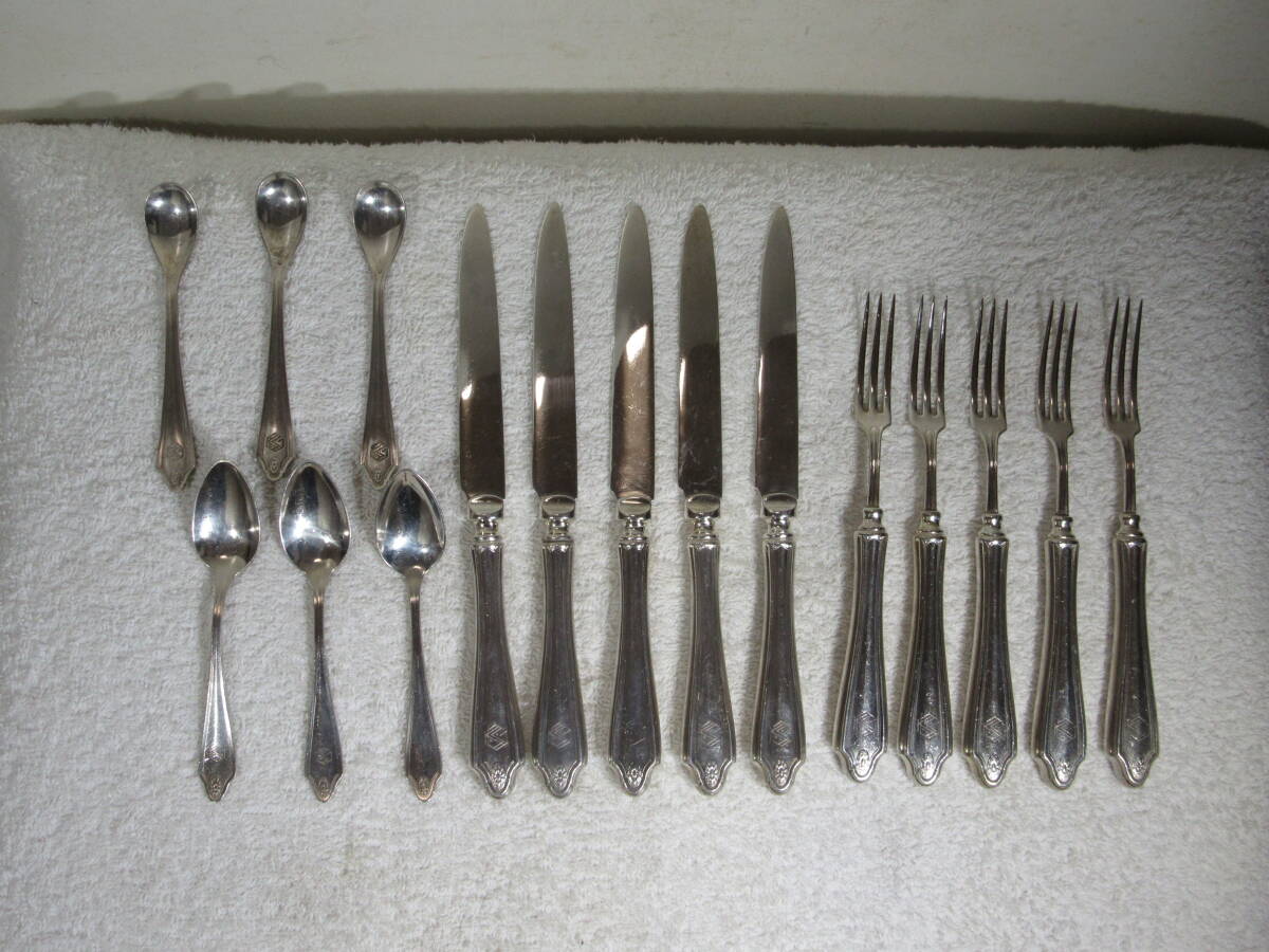 - 銀製品 ケーキ用 フォーク MEIDI-YA 重さは40g 5本 / 小スプーン COMMULLTY 6本/ ナイフ5本 中古美形
