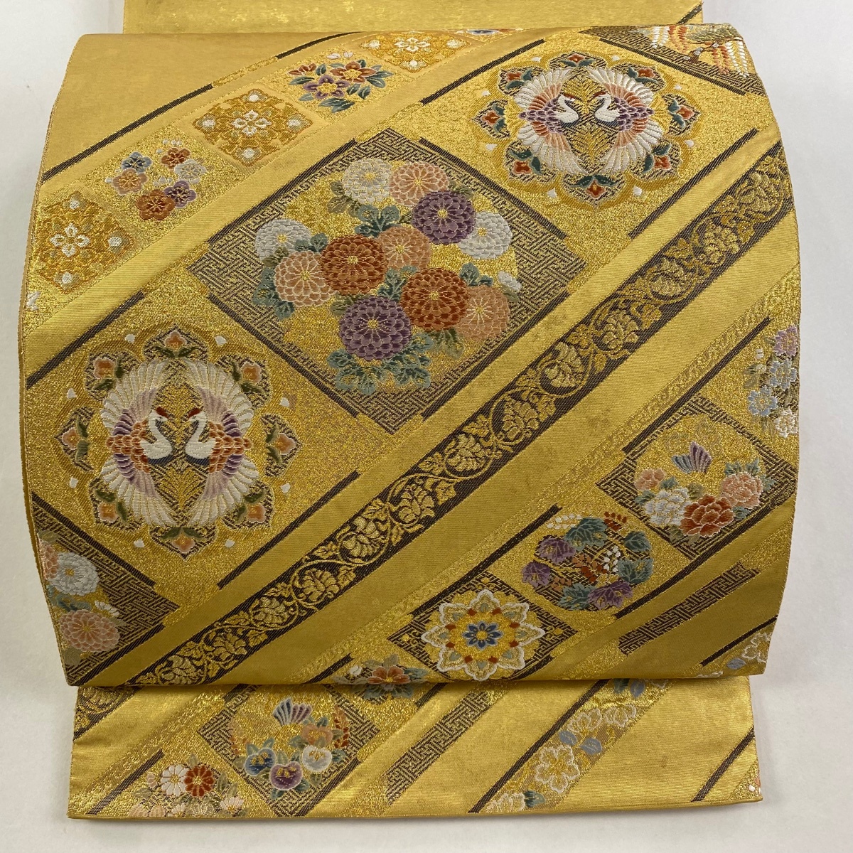 - 【美品】 袋帯 逸品 関西仕立て 花丸文 華文 金糸 箔 金色 お太鼓柄 正絹 【中古】