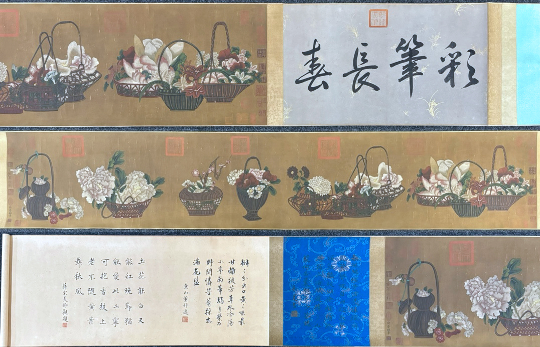 - ▽鴻▽古書道【南宋時代画家「徐崇嗣書」絹本「花卉図手巻」】 真筆肉筆 骨董書画 掛け軸 時代物 中国古美術 骨董品