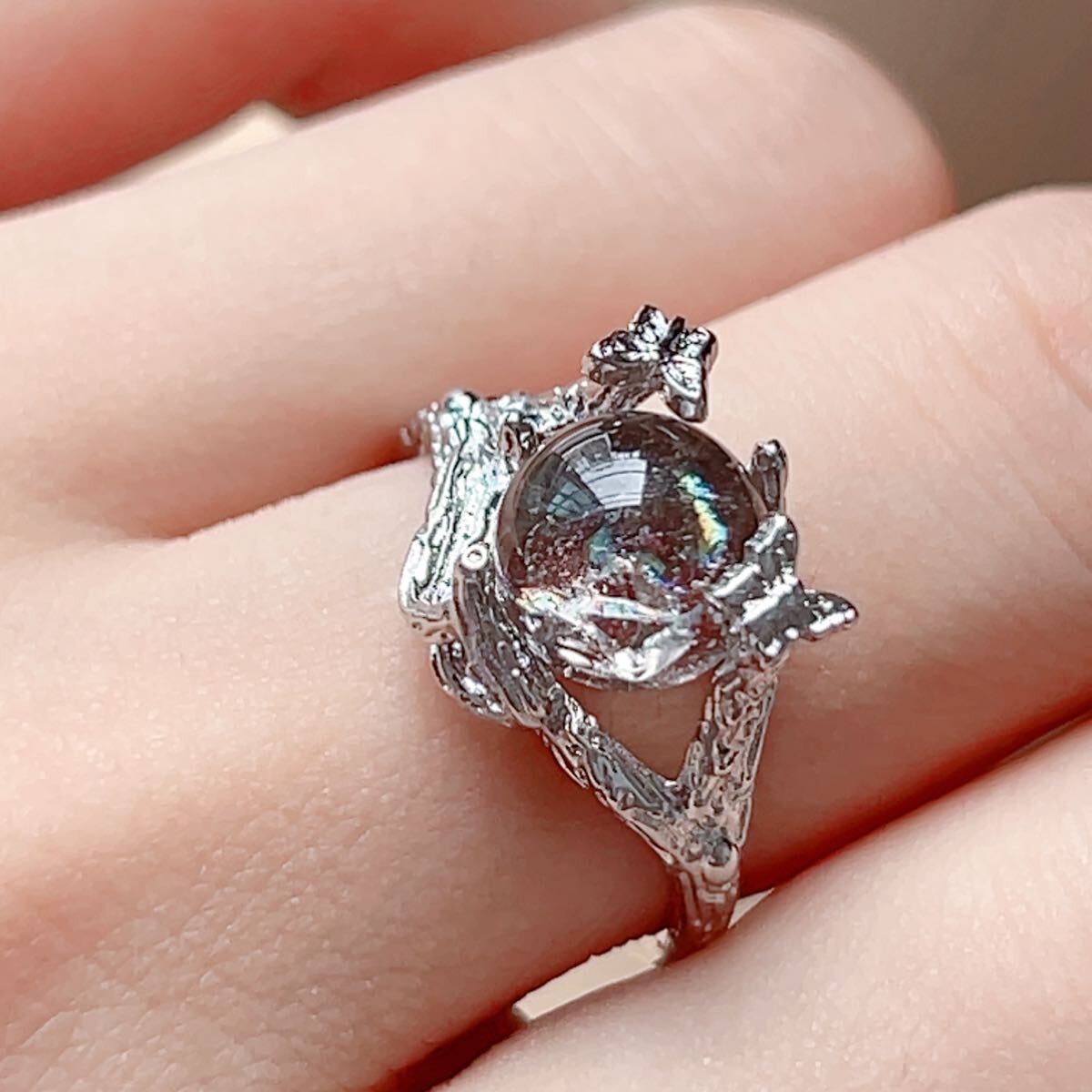- ◇虹入り◇スモーキークォーツ◇煙水晶◇指輪◇リング◇フリーサイズ◇天然石◇パワーストーン◇巾着袋付◇プレゼントにも041R101809