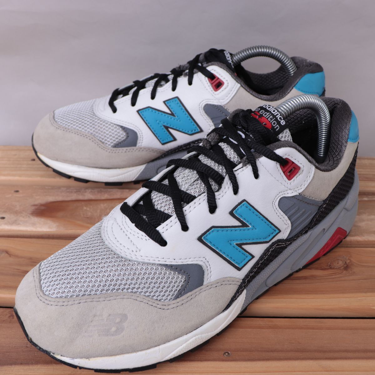 > z2763【580】ニューバランス US7 25.0cm/灰 グレー 水色 ライトブルー 赤 レッド 黒 newbalance メンズ ユニセックス スニーカー 中古