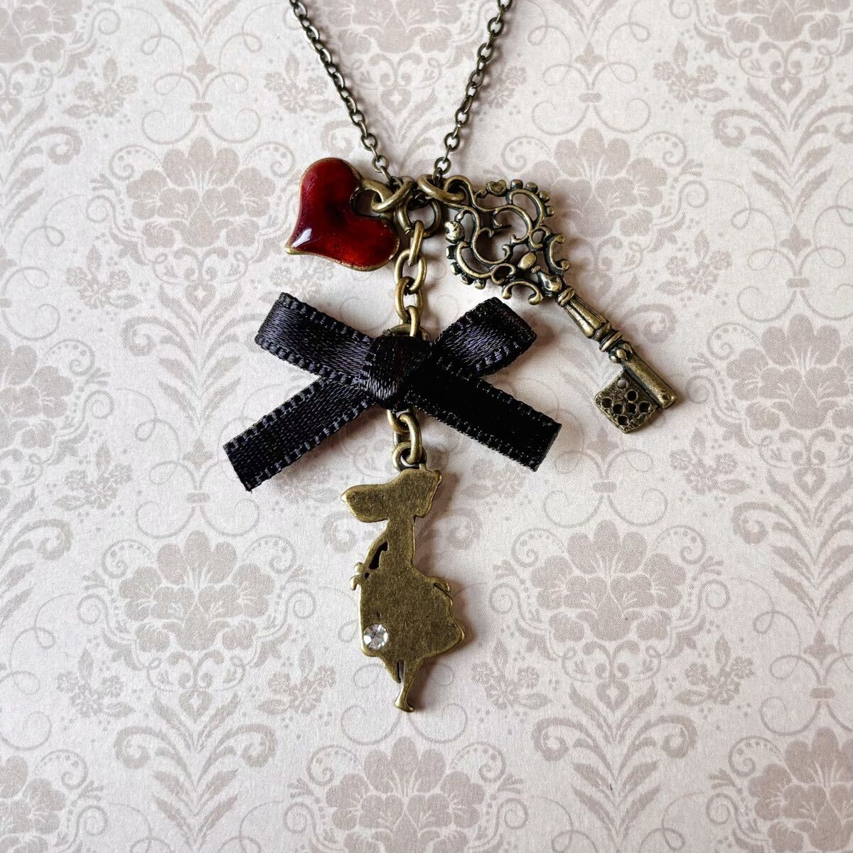- Disney ふしぎの国のアリス ネックレス ディズニー 不思議の国のアリス アンティーク風 アンティークゴールド色 ハート リボン ハート 鍵