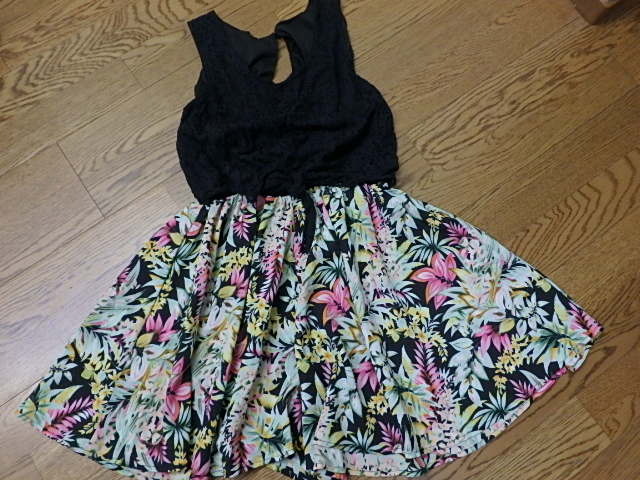 > ny11-25-1014-3 sweet rouge キュロットワンピース つなぎ Mサイズ 黒レース/花柄 レディース 中古
