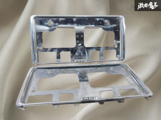 > SUZUKI スズキ 純正 ナンバープレート フレーム 2枚 前後セット 穴間 約21cm 縦 約 17cm 横 約34cm 即納 在庫有 棚A-6