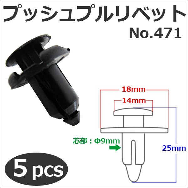 - 【互換品】樹脂製 プッシュプルリベット (黒)(471) (5個セット) バンパー・フェンダーパネル等の固定に