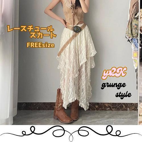 - 130F26 グランジ ロングスカート Y2K フェアリーグランジ レース 春夏