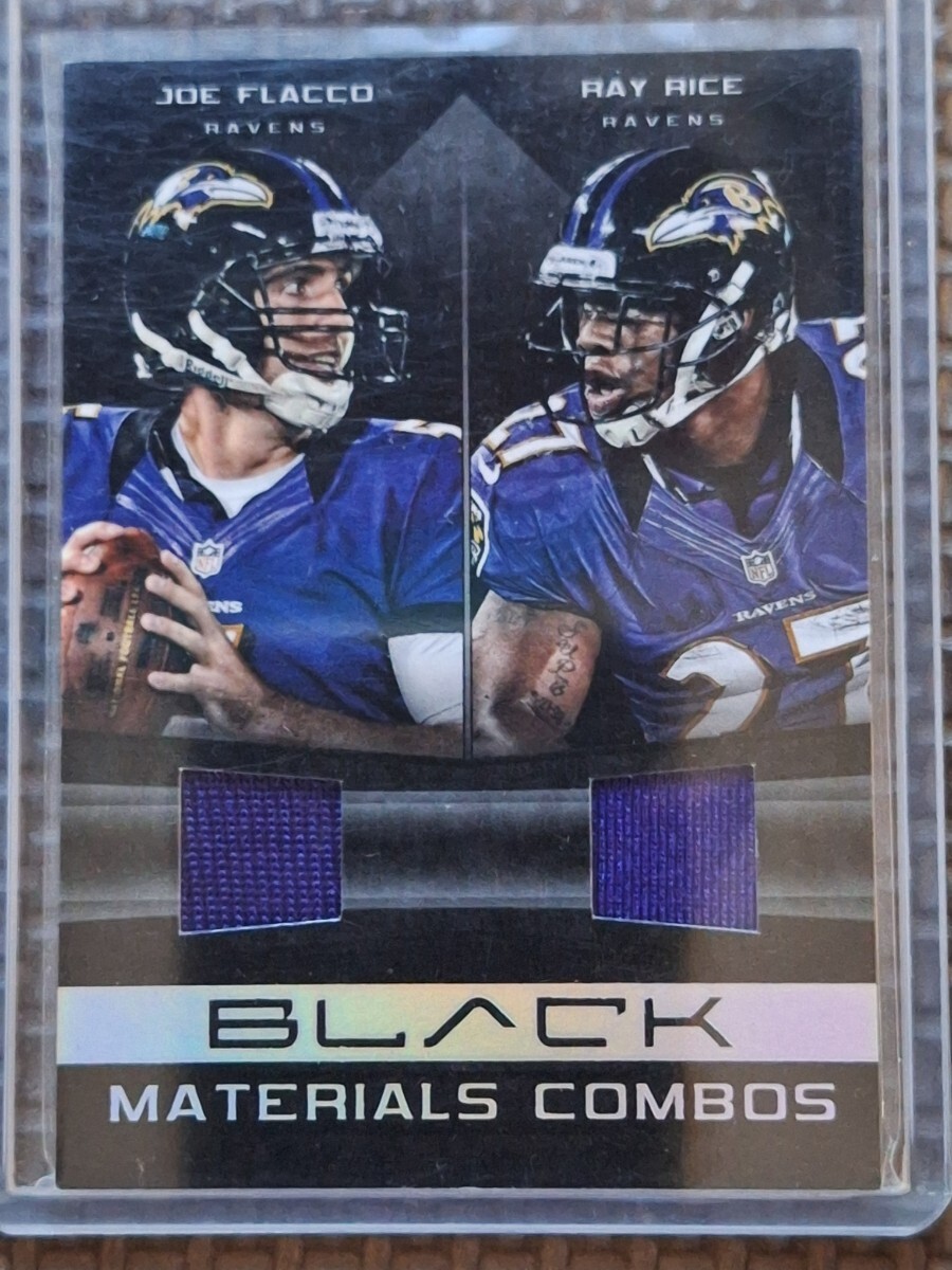 - 2012 Panini Black #35 JOE FLACCO/RAY RICE Black Materials Combos 35/50 Baltimore Ravens