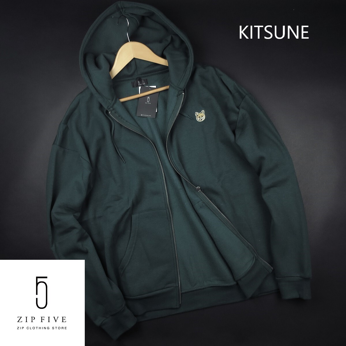 - 新品 ★ ZIP FIVE ジップファイブ KITSUNE キツネ ワンポイント 裏起毛 ジップパーカー フーディー 42bz /106D緑/【L】