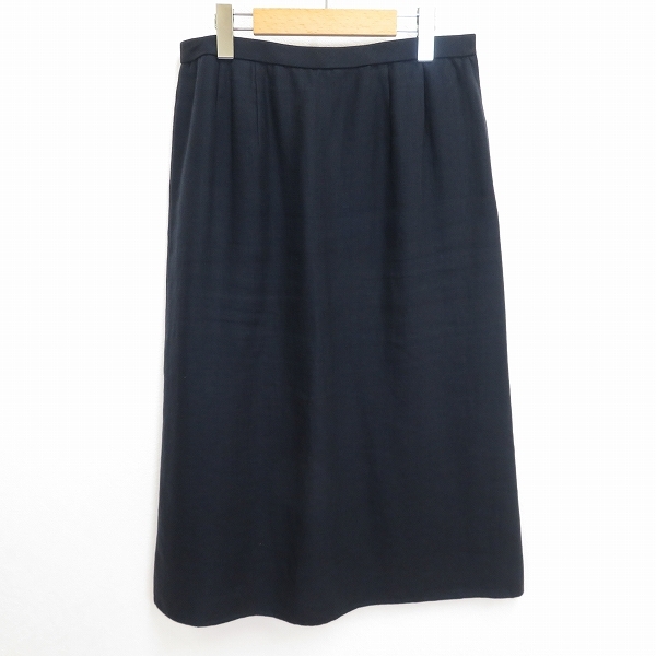 - #a レリアン Leilian ロング タイト スカート 13+ 大きいサイズ 紺 ネイビー 13号 無地 麻 リネン 日本製生地使用 935307 k01