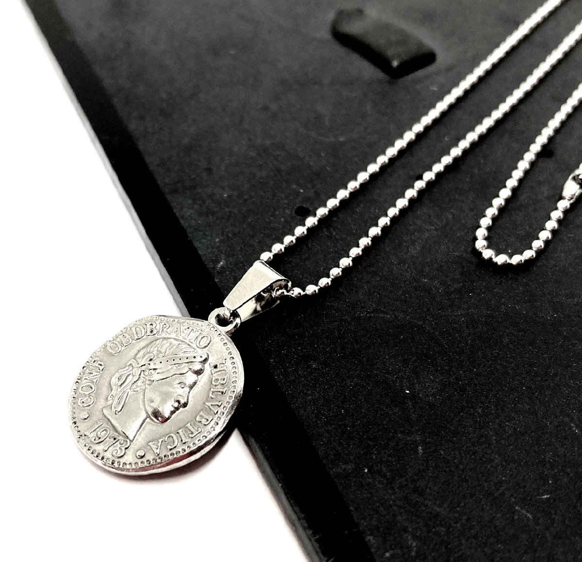 - ステンレス コインネックレス ステンレスボールチェーン50cm付き ST103