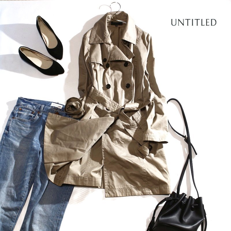 - アンタイトル UNTITLED 定番 クラッシック ロング トレンチコート 11号 3 グレージュ ベージュ 合物 秋 春 お洒落 ミセス