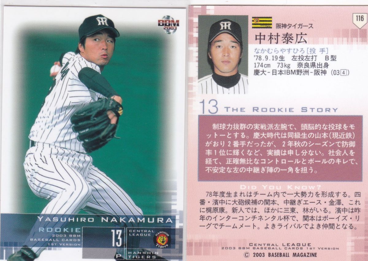 - ●2003BBM/1st 【中村 泰広】 ルーキーカード No.116:阪神 R2