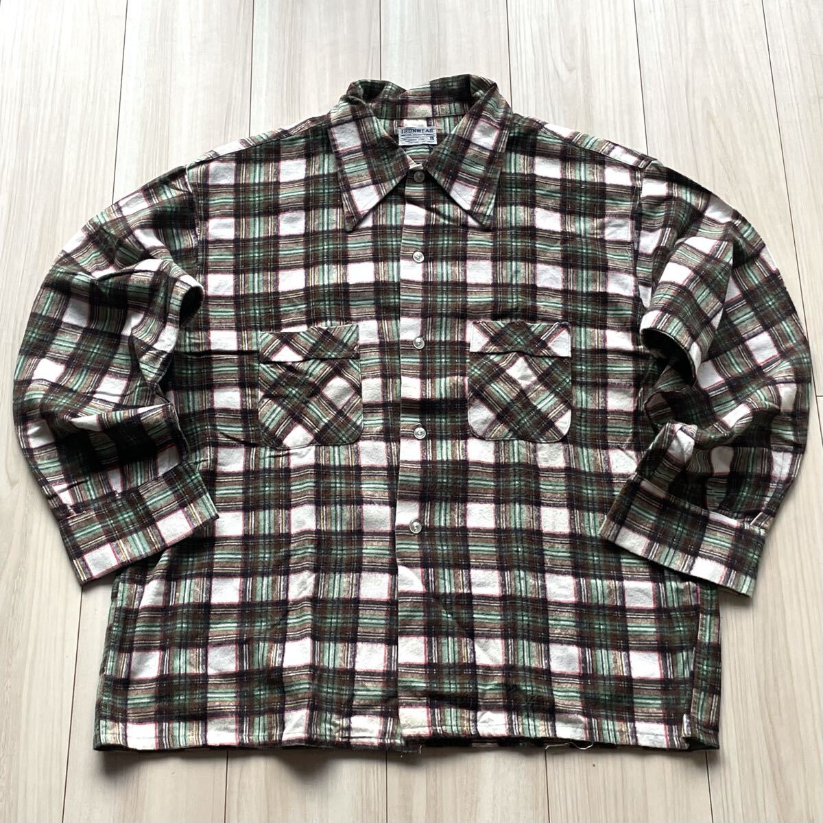 > ほぼデッド!神配色!オンブレ!70s IRONWEAR コットン プリントネルシャツ L ビンテージ Vintage 長袖シャツ チェック ミント レア