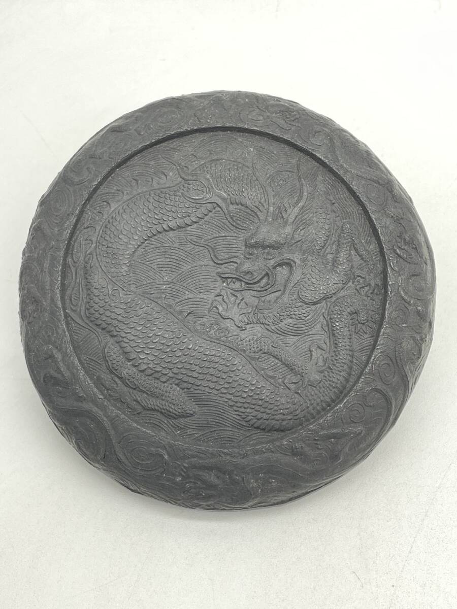 - 中国丸墨 龍彫刻 漢文刻 径10.5cm 207g 固形墨 円形 伝統工芸美術 文房四宝 中国古玩 書画 書家 書道 墨(11764)