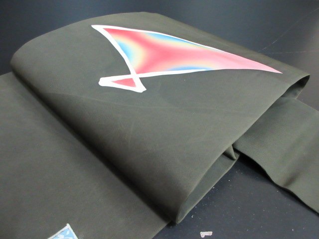 - 1円 中古 名古屋帯 正絹 和装 和服 作家物 幾何学抽象 太鼓柄 九寸帯 長さ375cm【夢職】★